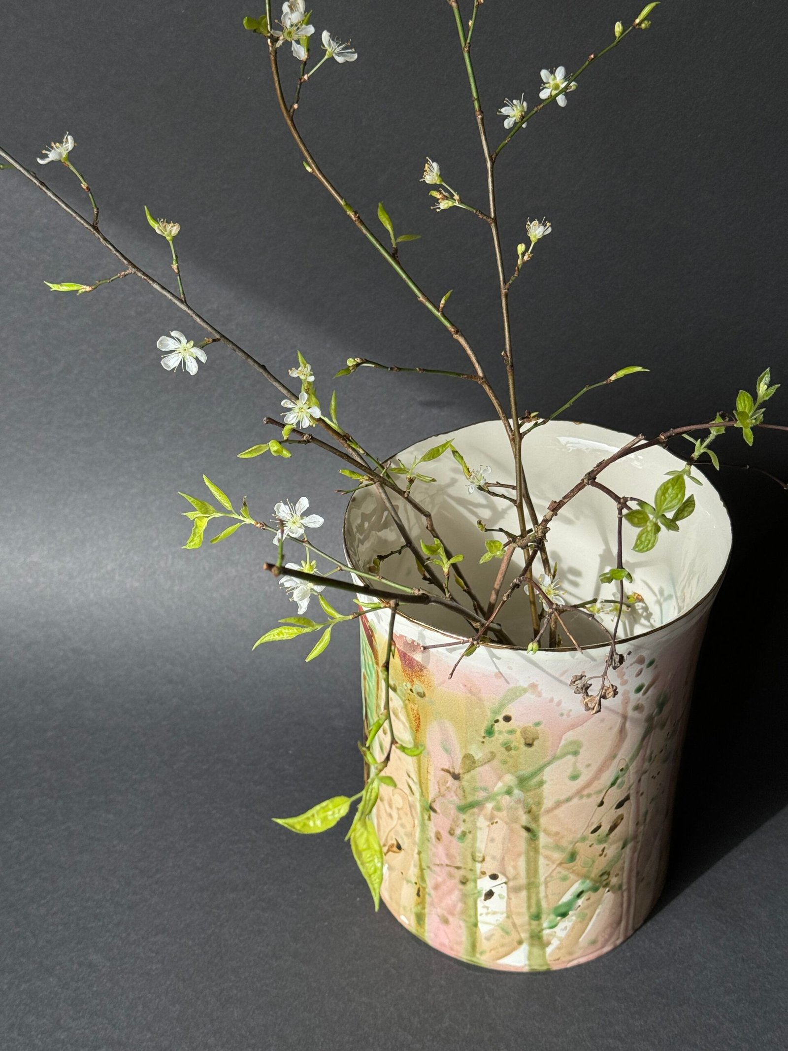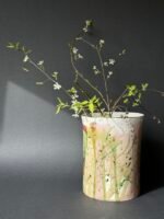 Keraminė vaza „Pavasario motyvai“ – naudojama dekoruoti interjerus, suteikiant jiems gaivumo ir atsinaujinimo jausmą, susijusį su pavasario sezonu.